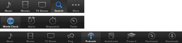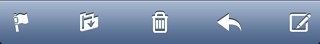 iOS工具栏一般处于屏幕的底部,但iPad端也可能出现在顶部。工具栏上的控件等宽放置。控件会随着屏上内容的切换而改变,因为内容与用来操纵它的控件是匹配起来的。在工具栏上放置当前情景下用户最常用的功能。每个工具栏上的控件至少要保持 44×44 points的面积(Retina屏宽高均提高2倍 one point equals two pixels ),方便用户操作。