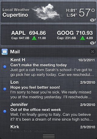 iOS平台可能大多数人觉得并没有Widgets的概念,通知中心内的天气及股票可以算是iOS对Widgets的试水(个人感受),虽然简单,但相信应该会在未来看到iOS对这一方面更深入的尝试吧。 ^_^