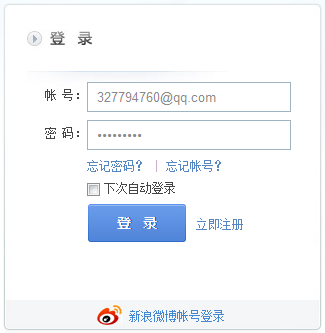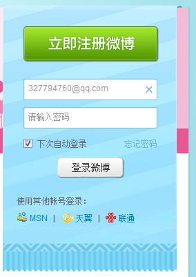 登录框嵌在一个围脖上,寓意“微博”,带来一丝丝温馨的感觉。